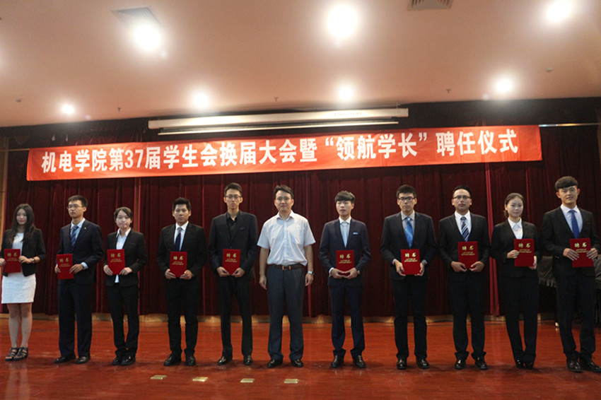 9月27日下午2:15,pp电子第37届学生会换届大会暨“领航学长”聘任仪式在第三报告厅举行。