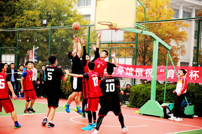 11月19日上午10:30,“育新杯”篮球赛冠军争夺战在南苑篮球场拉开序幕,pp电子对战中德学院。
